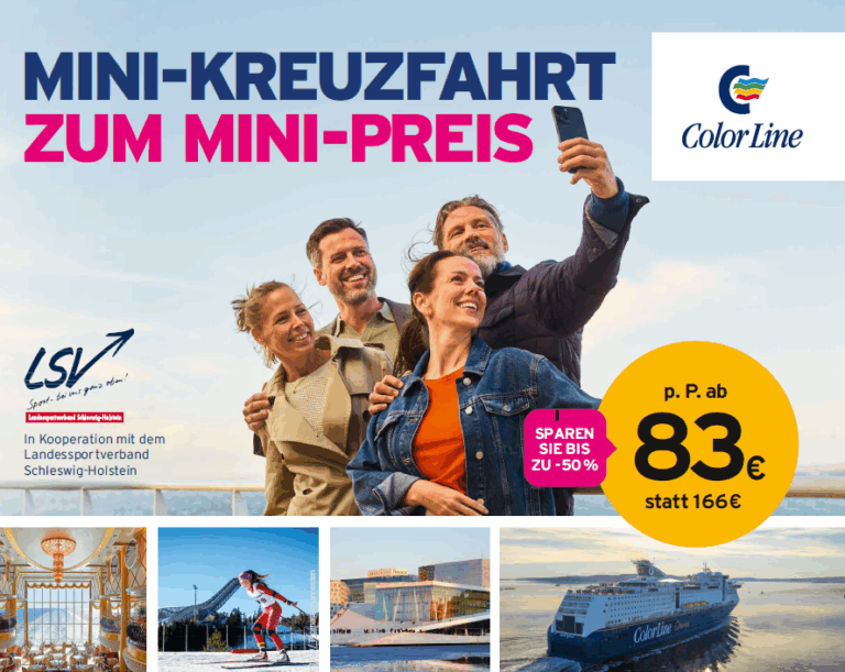 - Es ist wieder so weit: der Landessportverband Schleswig-Holstein bietet in Kooperation mit der Color Line den Mitgliedern aus allen Sportvereinen und –verbänden wieder exklusive ...